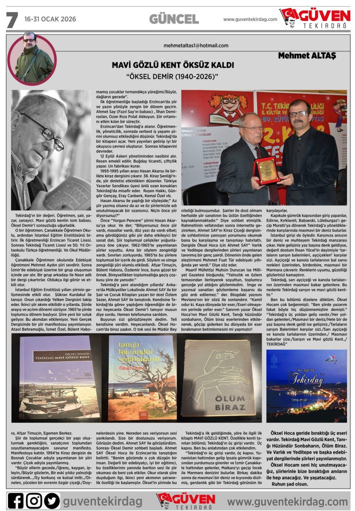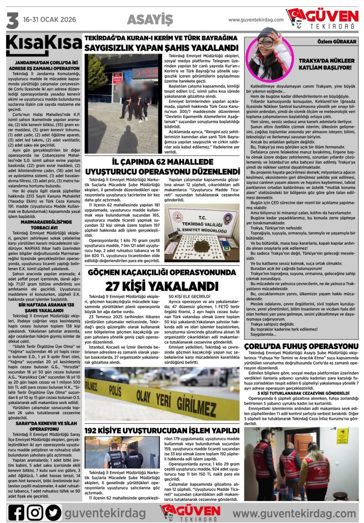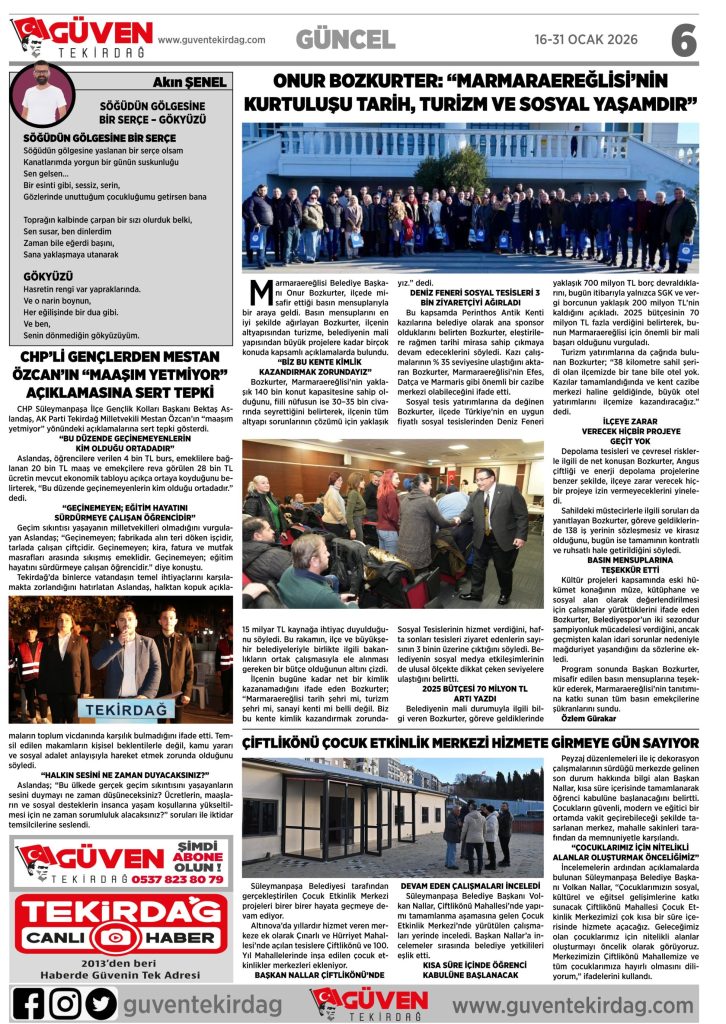 Bu gazeteye GÜVEN TEKİRDAĞ