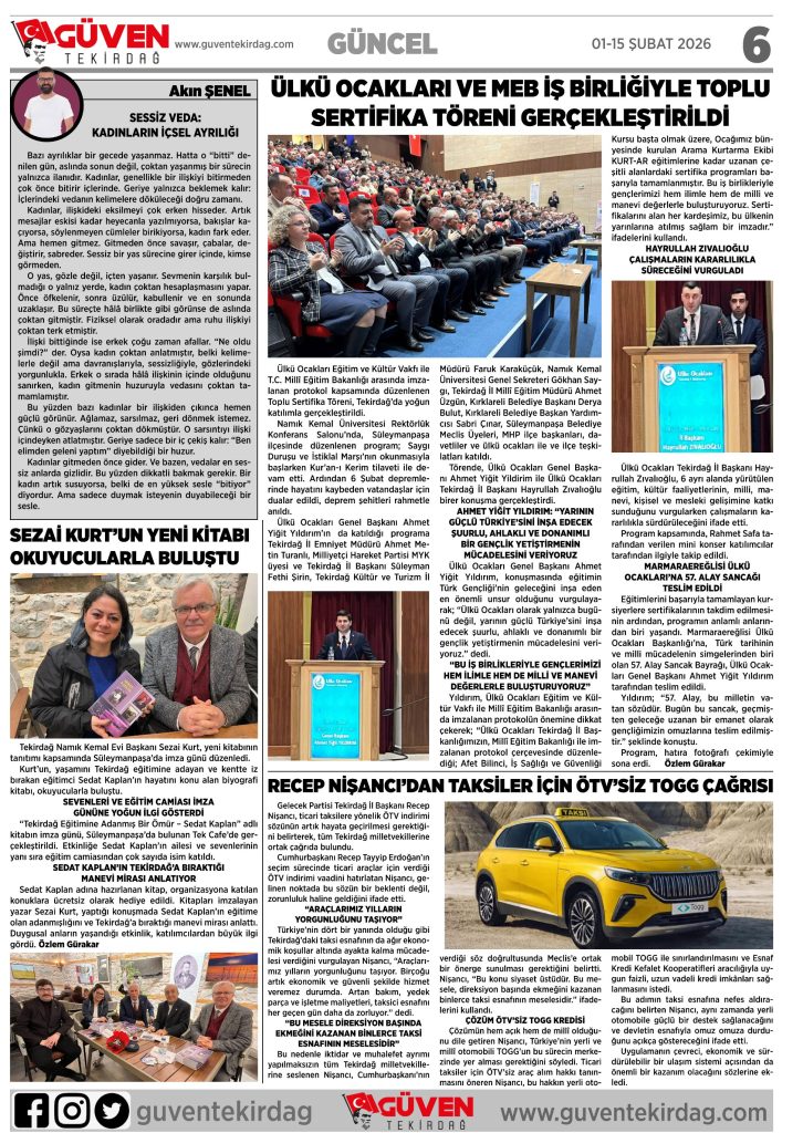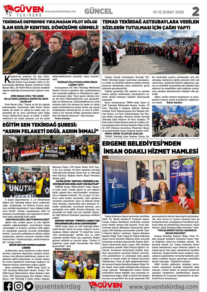 Bu gazeteye GÜVEN TEKİRDAĞ