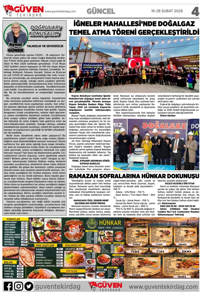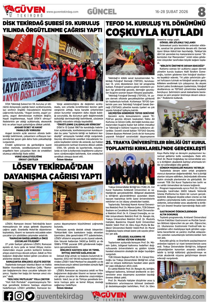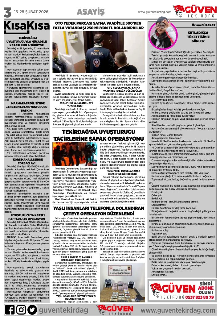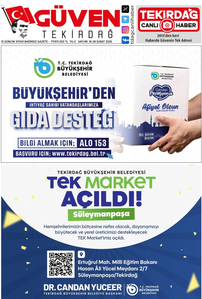Bu gazeteye GÜVEN TEKİRDAĞ